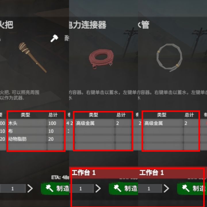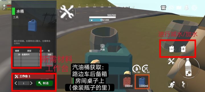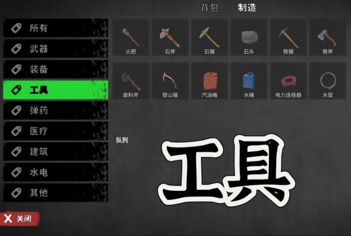 #启示录 #新手 #生存 #工具 开局的火把,不多介绍,就照明,感觉用处也不大,怕黑的可以带着水管和电线:目前水电不完善,弄不同,电力上的分解机到可以,需要时再造,不用又可以分解回收汽油桶:给汽车加油的重要工具,有车人才会烦恼油的问题改期给需要油的有车人做专题水桶:必带一个,对着雨水收集器和饮水机都可以使用,加满水桶最大1000,出