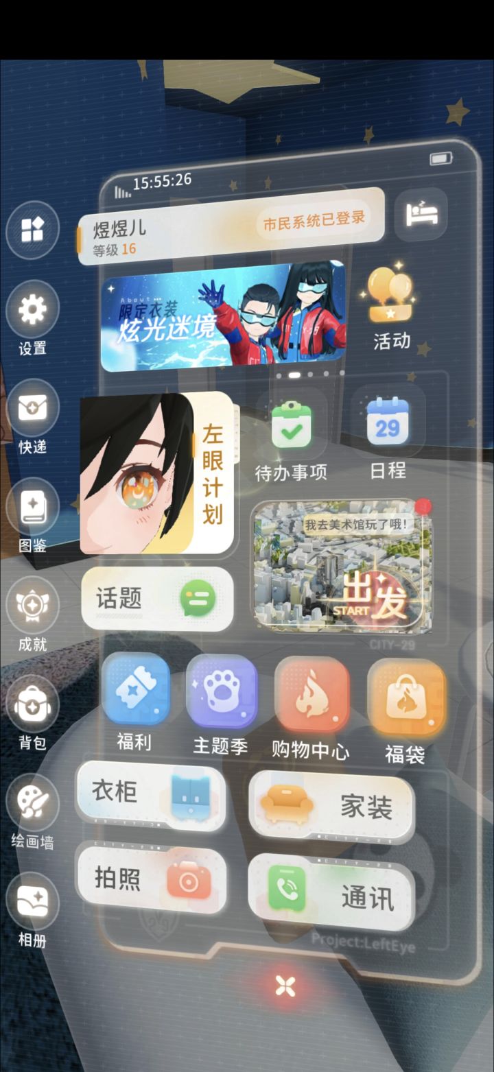#宝藏游戏安利派对 《左眼计划》是一款轻松治愈的陪伴类养成手游,由莱夫特爱工作室开发,适用于安卓平台。12 在《左眼计划》中,玩家将扮演一个角色,与一个小家伙共同生活,享受简单而温馨的日常生活。游戏的核心玩法包括与小家伙进行丰富的谈心和聊天,听取小家伙带回来的新鲜事,以及在小家伙外出探索城市时等待其归来。玩家不需要进行任何策略或数值操作,只需享受与小家伙之间的互动和陪伴。 《左眼计划》的