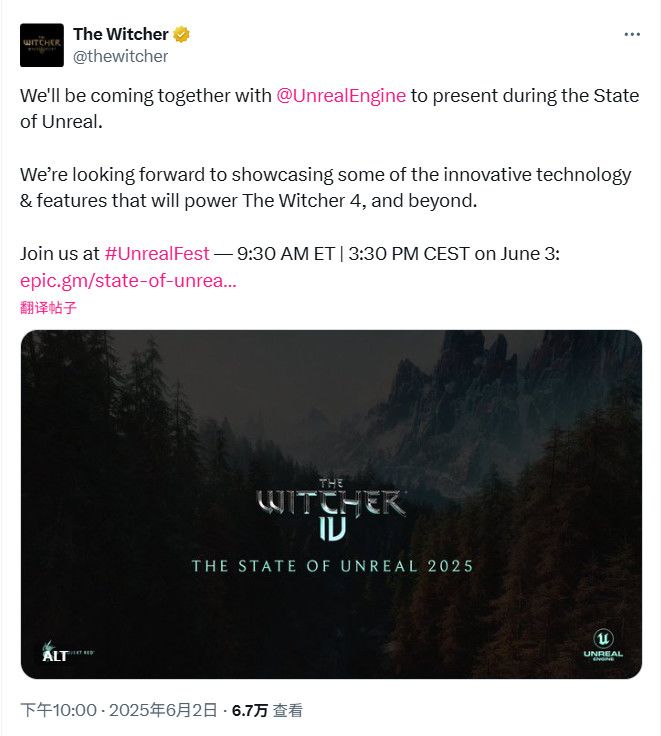 《巫师》官方宣布,6月3日9点半开始的“State of Unreal”发布会活动将有《巫师4》的相关展示!《巫师4》放弃了CDPR自家的RED引擎,改用Epic公司的虚幻5引擎。 对于第四部作品,大家期待吗?#主机单机 #巫师4 #巫师系列新作公布 #资讯评论员