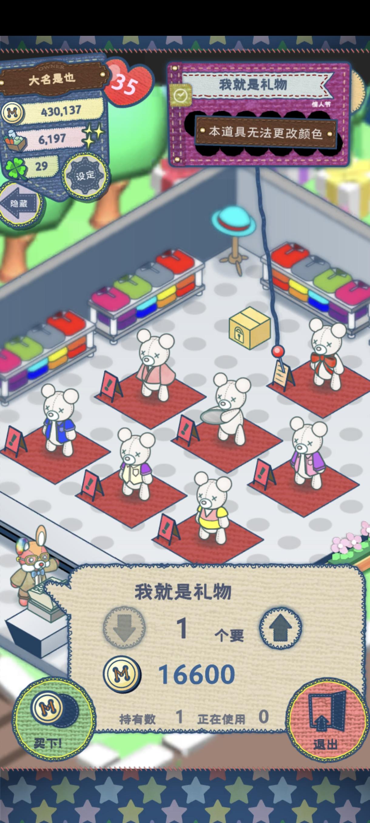 今天遇到的一个大佬的房间这些小熊特别好看!大佬很好心,还全部开放了,可以挖角赞美大佬!房间号是WXL-FKG-H7A#布偶动物的餐厅