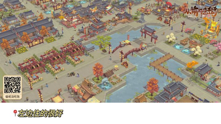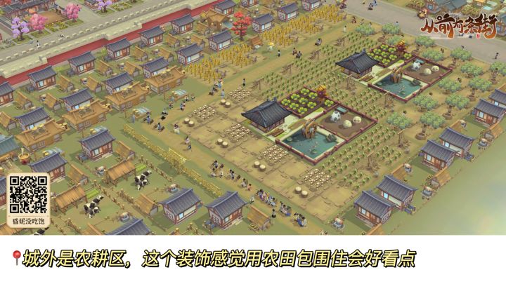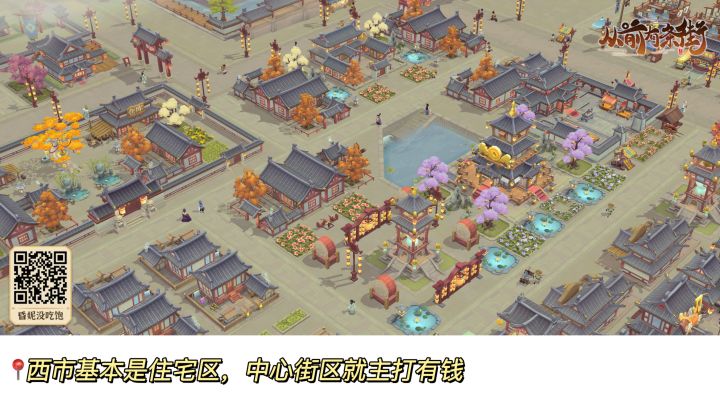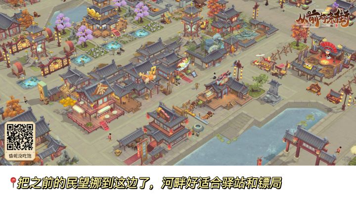 p1:点灯祈福庙,走过路过都要拜拜p2:城郊河畔物流中心,中转城内外工厂产出p3:学术中心,读万卷书,行万里路p4:主商业区,吃喝玩乐,茶楼麻将享乐不停p5:戏台子,周边小吃街安排,两侧等戏休息区p6:城内高级住宅区p7:城外工厂员工务工居住方方便便p8:城外矿区,还把很多精细工厂和宿舍放在一起了#从前有条街#布局分享