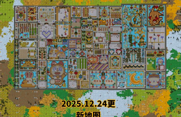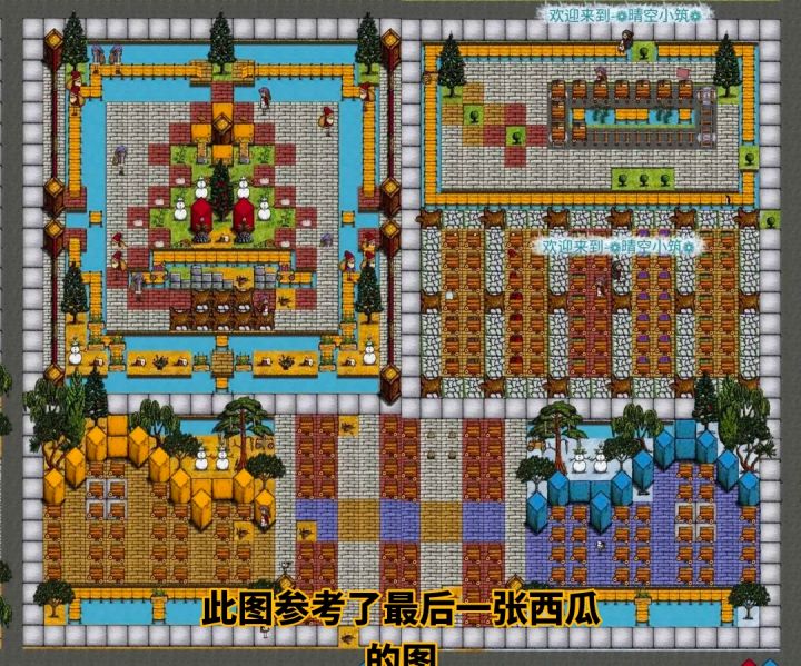 #希望之村建筑分享 #发现好游戏 #游戏日常 #游戏攻略 晴空小筑丶艾晴这档是2024年8月开始玩到现在目前都是完工状态,现在整体基本规划完成,后面就是没事情改改不合心意的地方,和做大型拼图了。放一些建筑的详图第二张图是一个总和区域左上角是个NPC区做成了圣诞树装饰,右边是醋栗收集,和礼物囤积,最下面左右是一个派的堆放区域,中间抓兔子。该图参考于最后一张西瓜的图而来第三个图是一个秋田犬回