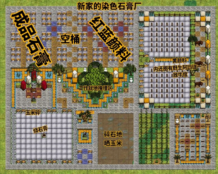#希望之村你是希望 #希望之村建筑分享 新家石膏房,堆放未烧制的石膏是另一个图,还没出图。会就近修在此图正下方,可以预留空地衔接玻璃房,做到堆放石膏和奶牛机玻璃房在一处方便。此图已完工。