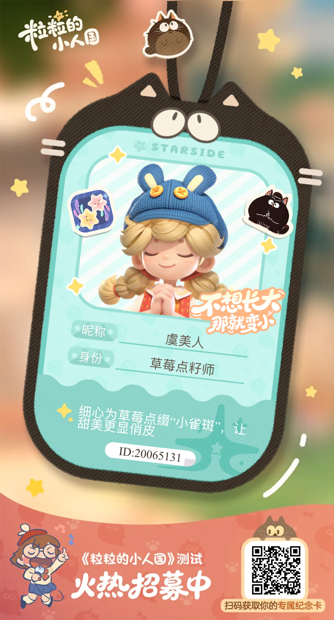 【正式申请】申请《粒粒的小人国》内测资格:愿做一名细致的微观世界共建者 尊敬的官方团队: 我是一名自9月24日游戏首曝以来便持续关注的玩家。《粒粒的小人国》以其独特的“皮克斯绘本风”美术和“微观视角探索日常”的创意,深深吸引了我。每次看到新内容发布,都让我对这个温暖、治愈的微小世界更加向往。 我为何如此期待并想参与测试? 因为我不仅是被游戏吸引,更是被其背后的理念打动: 1. 视觉与情感