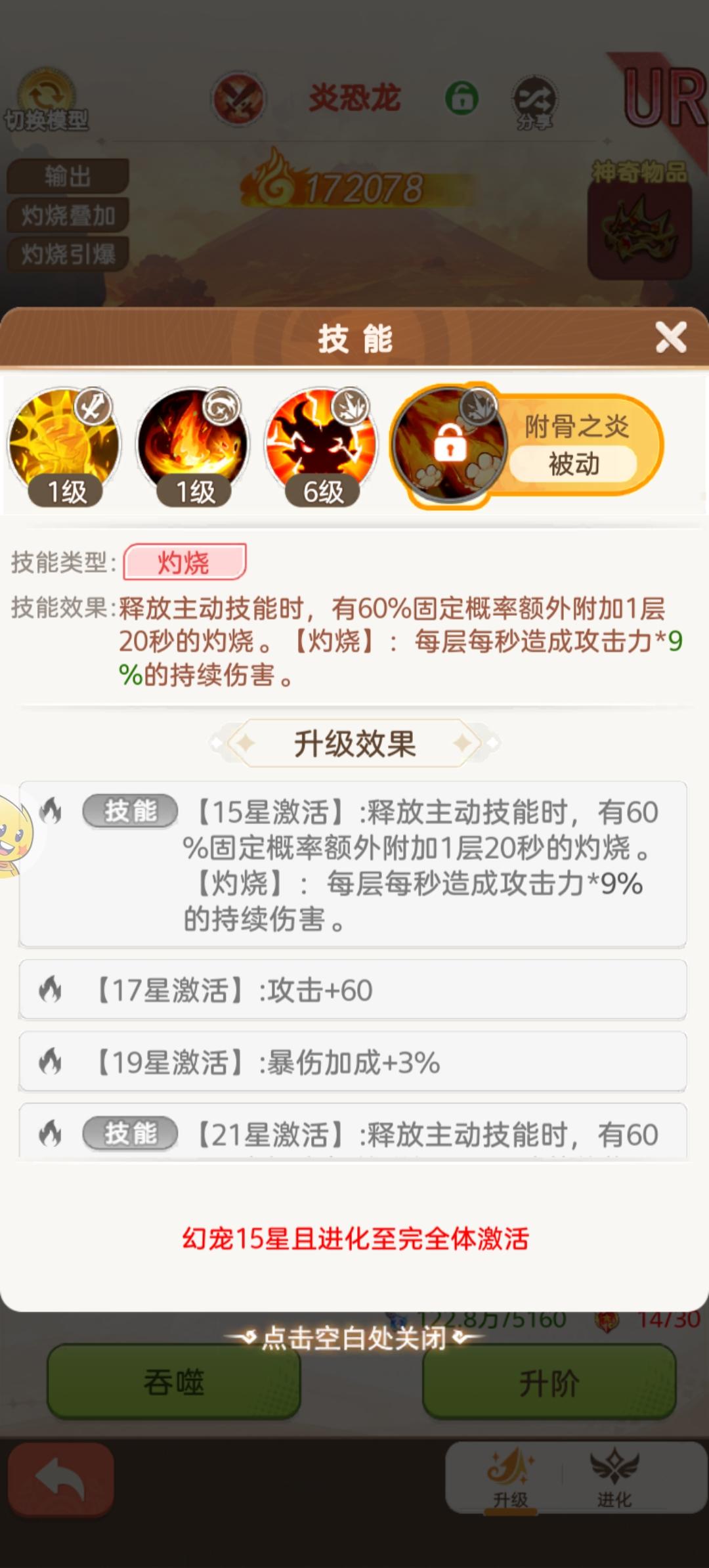 帕瓦起源1服-编号110074-游戏名:云逸雾这两天跨服聊天有很多人说小炎龙打的伤害很低的问题,确实有这个事实,小炎龙公测后技能改动很大,首先讲一下大招,除了有几率挂火之外就是引爆,内测挂火几率是100%的,这里是基础60%,那么就很看运气成分,然后就是他的灼烧伤害也不高,然后就是引爆,当敌人有两层火的时候小炎龙放大招再挂一层火就能引爆,以上图的数值来算引爆三火就共有519%攻击的伤害,当完全体
