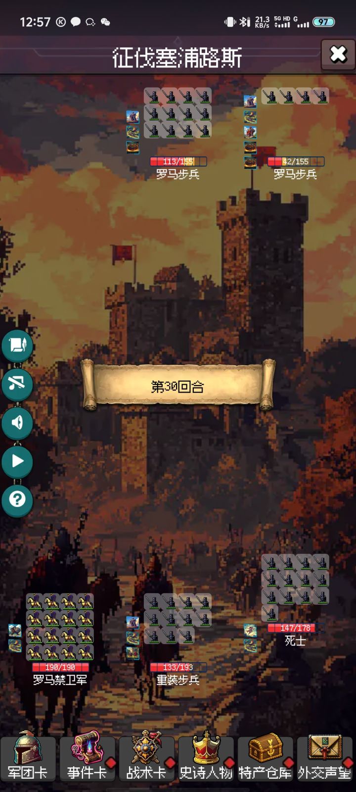 对面强度都是两星,还有一个战车和罗马的橙色步兵那种,我这边打死那两的时候三张卡都是大半血,还有带了一个奶,硬生生让他一个车给我三张卡全熬死了,不是哥们,干嘛呢,这还不阴啊#帝国可以重生n次