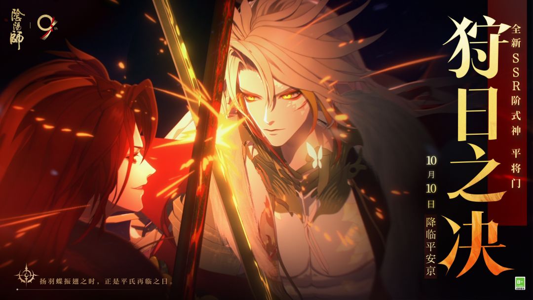 光影随行,一体两面,少时的愿景如焰火难握。 英雄之路多孤独,世人只看见这里曾来过一个疯狂的逐日之人。 哪怕是最后一抹烈炎,他的笑也比流下的血还要夺目。 「即便是最后一步,我也要用自己的方式……结束这一切。」 《阴阳师》全新版本「狩日之决」现已开启,全新SSR阶式神 平将门(CV:古川慎 / 夏浚恺)降临平安京! #平将门 #阴阳师历九弥珍 #阴阳师