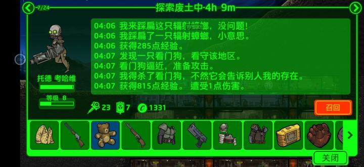 战果:派出去36人次,4天刷出了7E图纸感觉以前走了超多弯路。承接上文关于属性的分析。————————————————★重申一遍:这个游戏关于探险的设定,都是增大概率,不管是属性还是其它,并非100%!并非100%!并非100%,大家一起来验证一下吧!看看第一句话究竟有没有加成。,这个方法尚且存疑,没有进一步深度检测过。可以自己派20小人出去,分别第