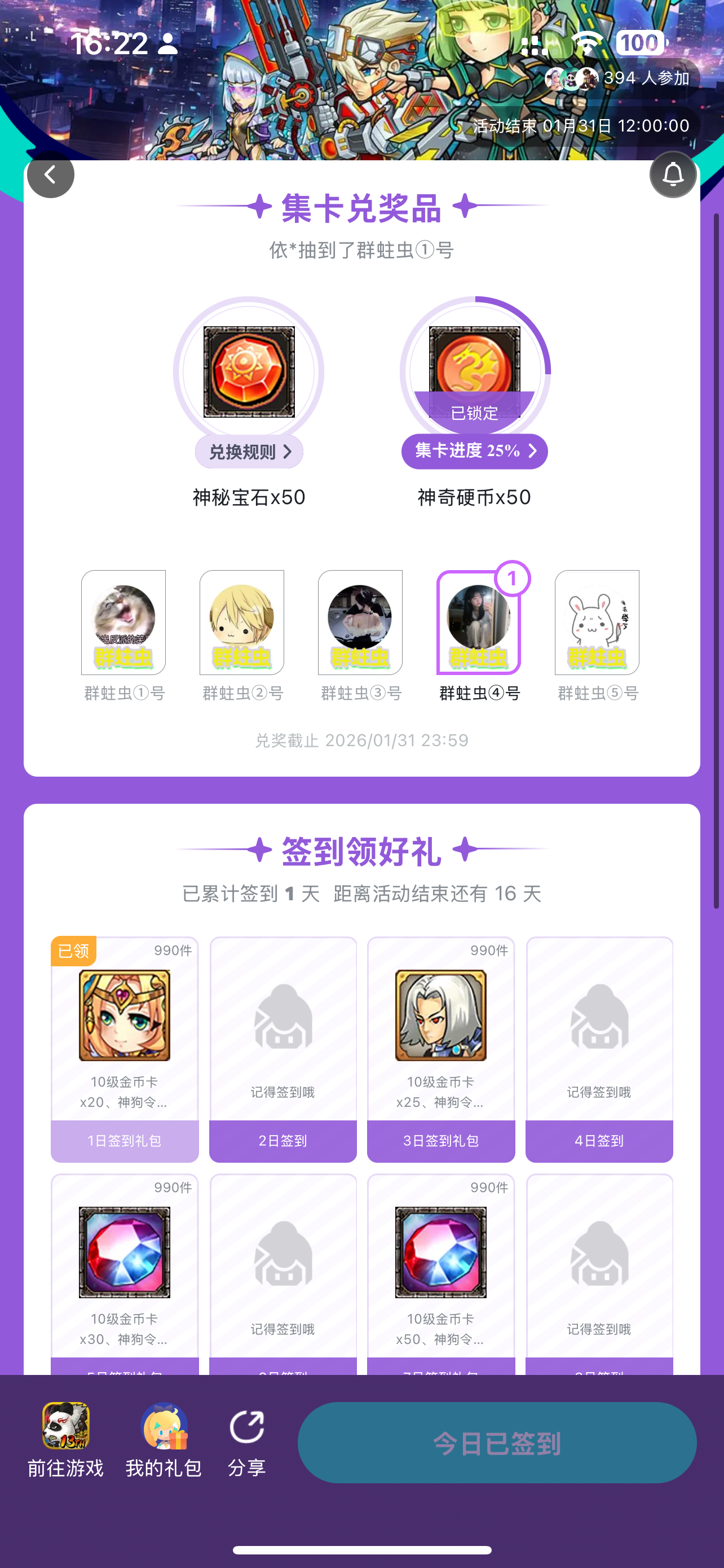 真好回坑第一天就签到了 #幻想英雄