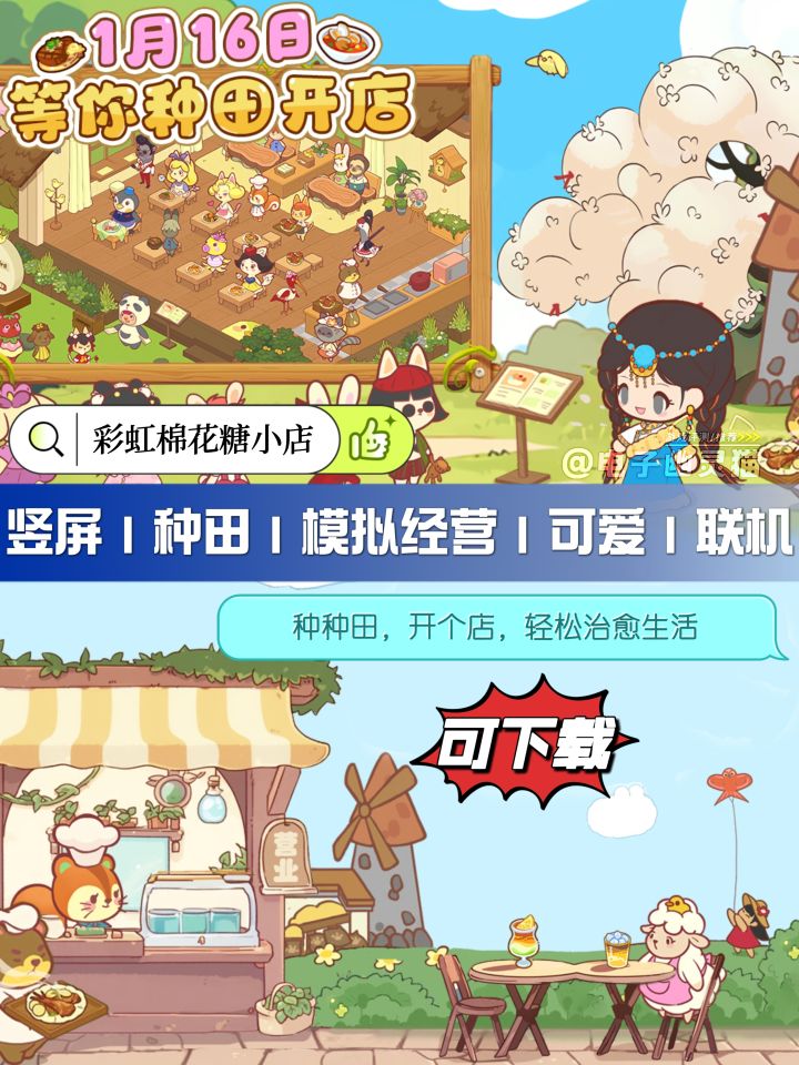 🎮游戏名⚫︎彩虹棉花糖小店🎮游戏类型⚫︎种田/模拟经营/养成/治愈🎮游戏状态⚫︎今日公测,可下载游玩⭐⭐⭐(点击最下方游戏标签右侧“下载”,即可立即开始游戏( ⌯' '⌯)📣)——🌸画风非常可爱治愈的模拟经营游戏。🌸可以种田,养殖以及开店!🌸建设自己的餐厅,收集菜谱,接待客人。🌸还有各种好看的装扮,也能打造自己独特的农场小家!✨游戏今日已经公测啦,大家玩的开心(˵¯͒〰¯͒˵)—