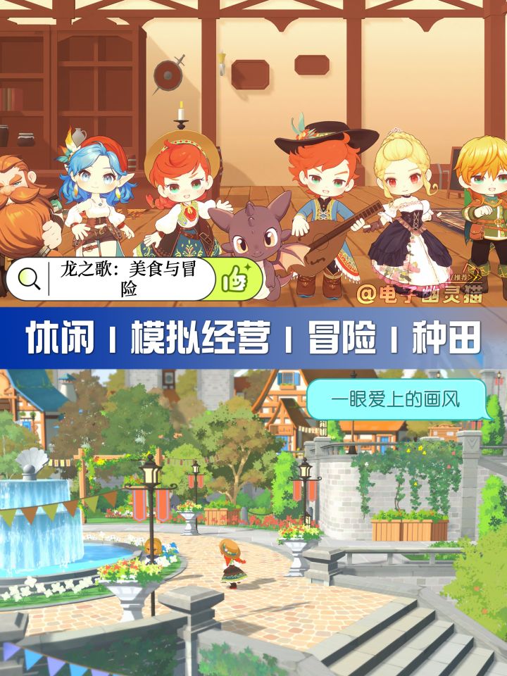 🎮游戏名⚫︎龙之歌:美食与冒险🎮游戏类型⚫︎休闲/模拟经营/种田/冒险🎮游戏状态⚫︎预约中(点击最下方游戏标签右侧“预约”,即可在游戏上线第一时间收到通知( ⌯' '⌯)📣)——✅游戏如标题,美食与冒险缺一不可。🌸我们在游戏里可以体验种田、钓鱼、酿酒、制造、烹饪,等各种模拟经营类玩法。🌸但同时,在野花山谷、蘑菇洞穴、蕨地岛、熔岩岛、雪山之巅、海底森林和梦魇之地,体验到冒险玩法,地图风