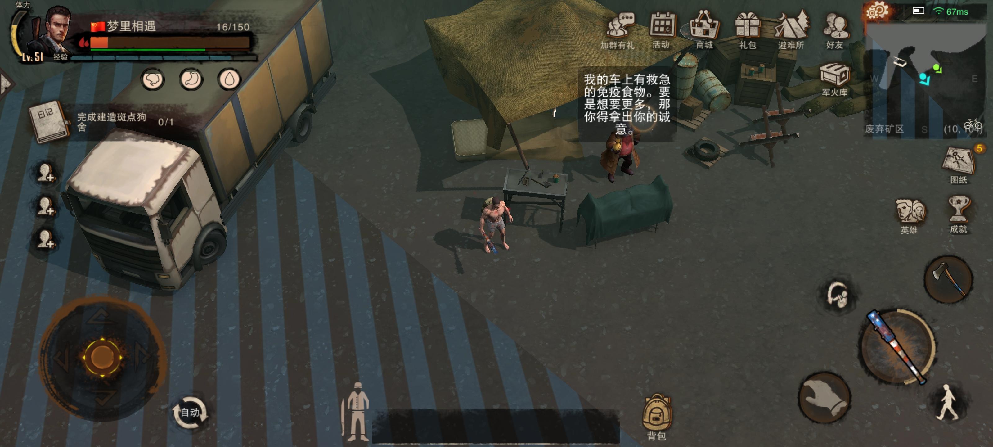 Q:游戏要怎么玩,一开始完全不知道该干嘛? A:废土行动是一款生存游戏,玩家需要收集地图场景中的资源;解锁建造图纸中的道具不断强化自己,建造自己独特的家园场景以抵御丧尸的入侵;多种多样的装备,武器和家园建筑为您带来独一无二的游戏体验。 Q:游戏中如何砍树挖矿? A:副本场景中的树,矿藏采集需要特定的武器,砍树需要斧子,挖矿需要石镐;武器不用装备在手上只要背包中存在就可能砍树挖矿的。 Q:如