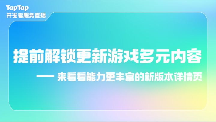 Hi 亲爱的游戏开发者伙伴们!新一期 TapTap 开发者服务团队内容分享将于12 月 30 日 15 点 正式回归啦~一直以来,我们秉持着为广大游戏开发者提供全方位服务的宗旨,帮助大家更加顺畅地完成游戏的运营工作。在和大家日常的交流中,我们了解到,各位开发者伙伴会由于对平台规则的不熟悉,导致在上架过程中遇到诸多难题。因此,TapTap 开发者服务团队带来了内容分享直播形式的定期节目,直播中将