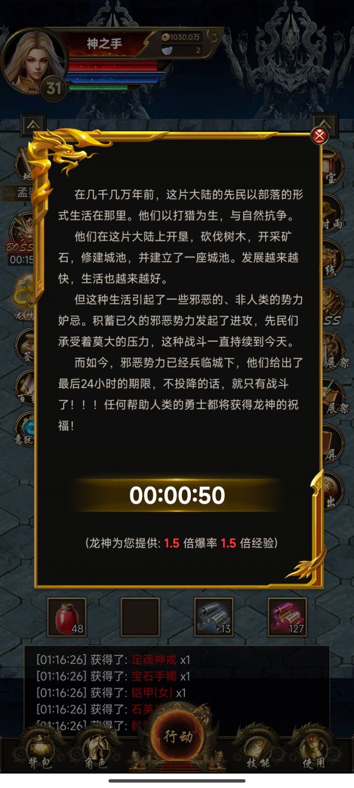 #开局一把刀装备全靠爆 喜欢战士玩了战士,后来听说职业平衡挺好的。靠着萌新1.5倍爆率和经验不用一天就35级入门啦,很多不懂的地方群里问都有大佬秒回。攻略也很齐全,游戏不肝不氪。有离线挂机选项,有息屏选项。无充值入口,推荐大家试一下。