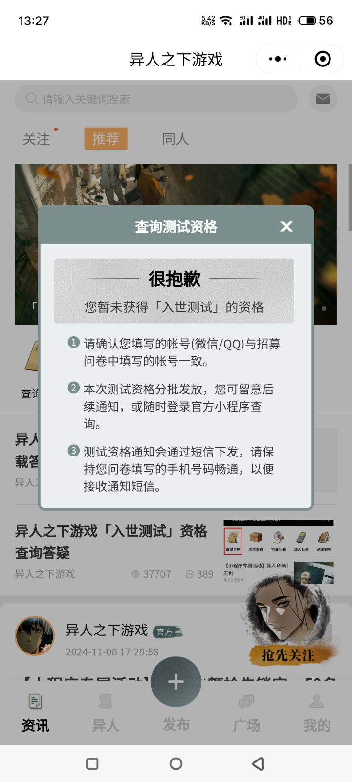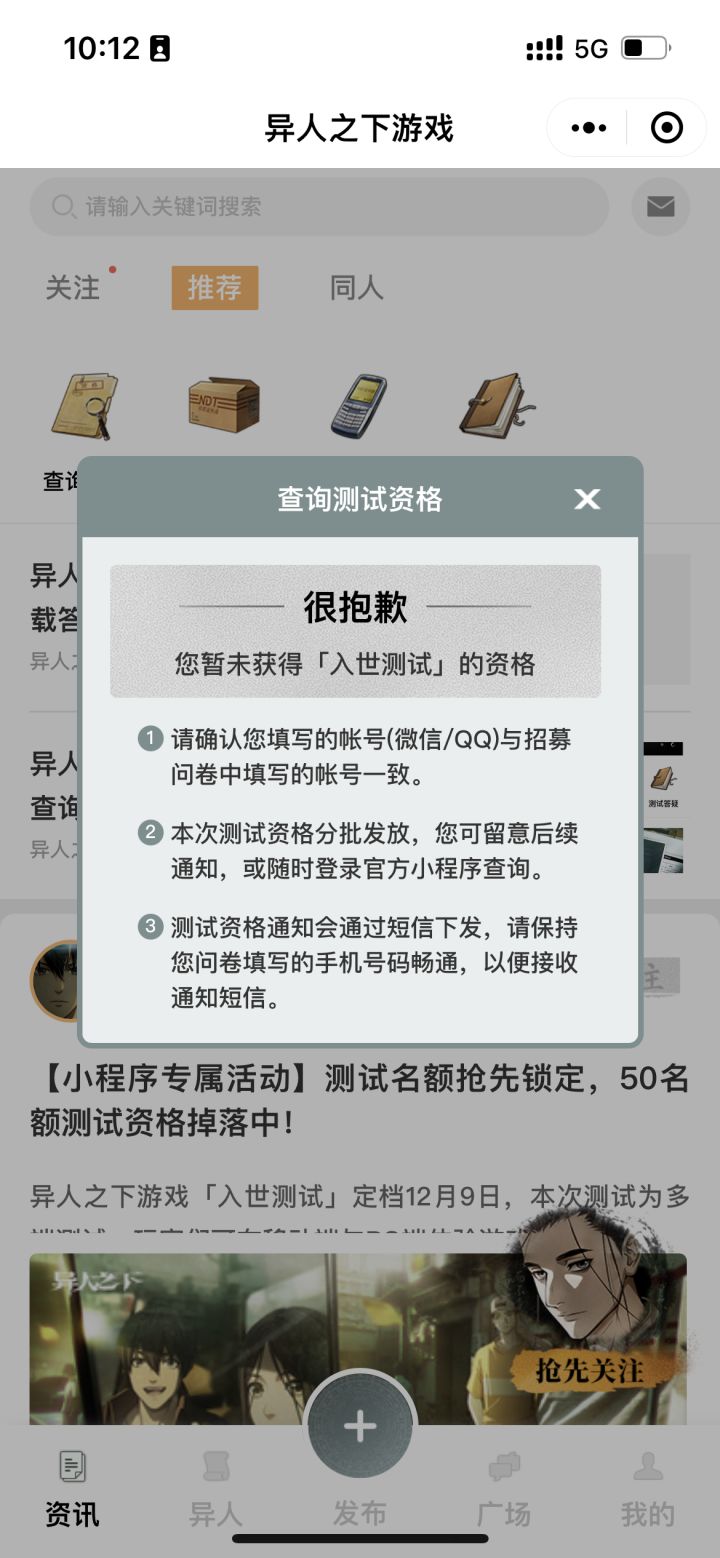进游戏,用微信和qq登陆都显示没有资格,要哭了##异人之下 #异人之下游戏入世测 #异人之下内测