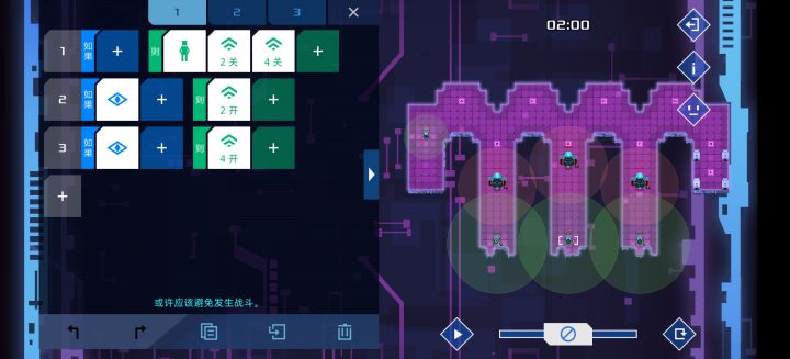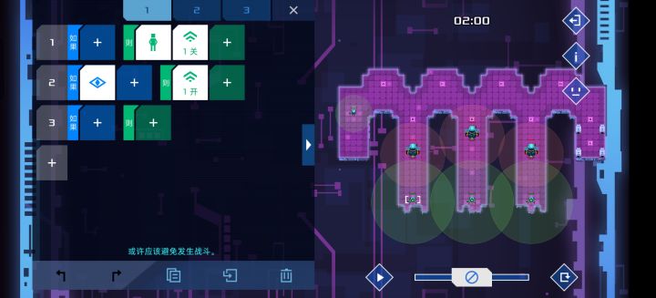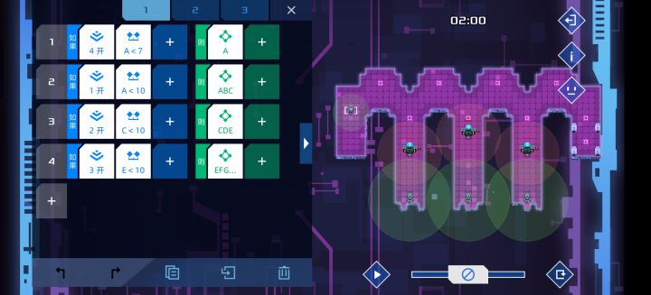 大佬们,按这个游戏的执行来说不应该再两条代码同时成立时,优先执行下面那个代码吗,而且旁边的侦查机代码好像就是符合下面代码优先的吧,一般情况下关闭信号,遇到敌人再开 可为什么我一开始的那个机器人的代码会进入死循环,虽然我这个代码确实无法通关,但是不理解这一步执行为何会这样。求助求助#异常