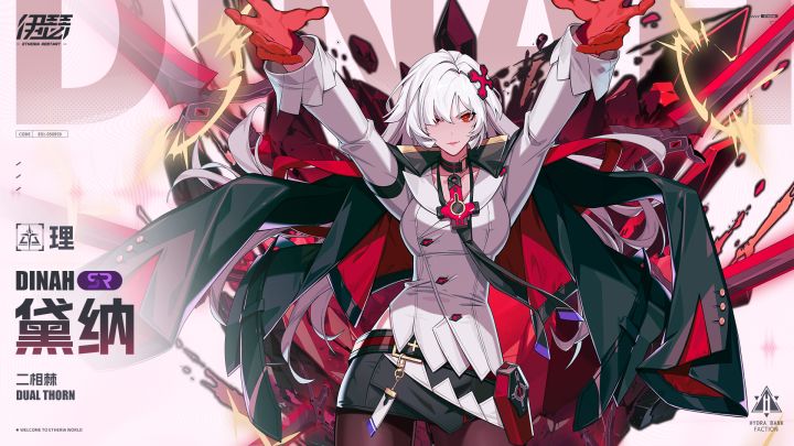 // 伊瑟ID:黛纳// 称号:二相棘// 所属势力: 海德拉银行——「你好,我是黛纳,这是我的名片。如果你有需要,我可以为你的资产做一个精细的风险评估。」■报告 I:为人赤忱忠诚,极具责任心,做事干练利落,雷厉风行,再棘手的难题都能迎刃而解。■报告 II:严于律己甚过严以待人,与同为经理人的克拉肯形成了鲜明对比。■报告 III:过于严肃的外表和一本正经的态度总会让旁人认为她是一位不解