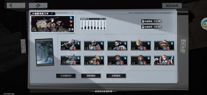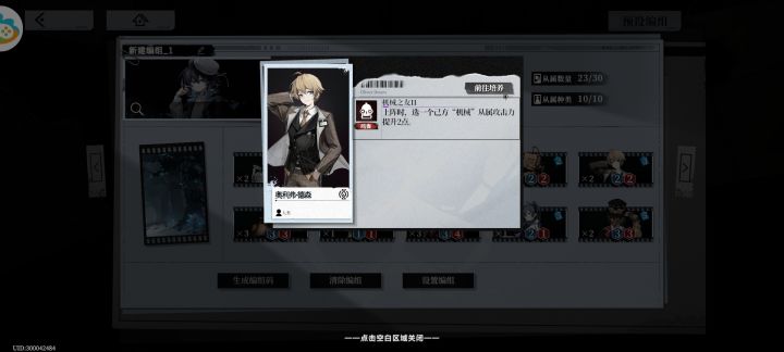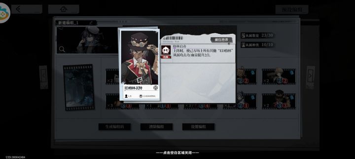 ID:300017862 昵称:情绪基金会初始三点能量十分适合速攻以及中速。阵容如下:思路:前期依靠优质三费压场,技能压血线低费偷血,随后利用治安官,格林浮标斩杀。遇到同行以及手牌较差的情况下也能使用C4来经营对局。偷鸡combo解析:留声机多次的攻击频率,无人机回手后再次使用留声机,利用治安官偷鸡斩杀。同理留声机可以利用在治安员身上斩杀过怪,也可使用在机匠上打续航后期。高频率伤害大