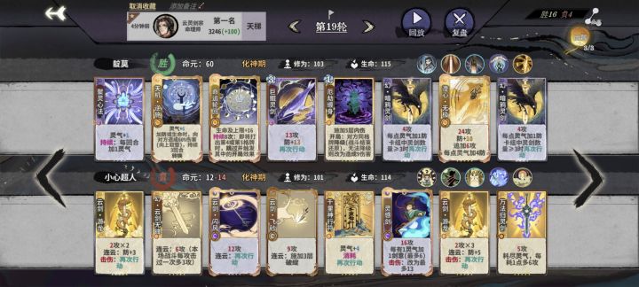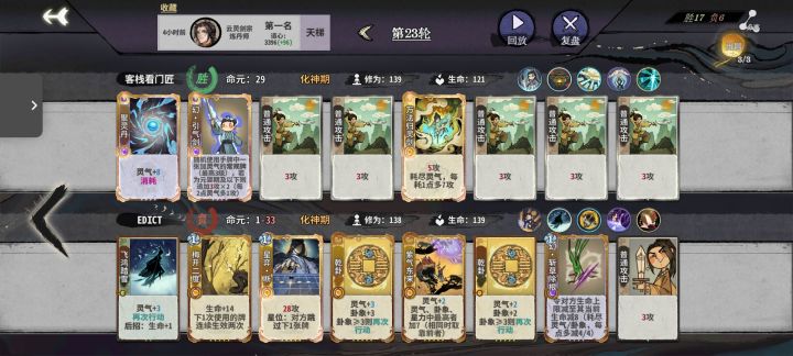 第8轮这质量己经有点想放弃第12轮副职兼修和道韵预感发力第19轮见识到三动无视丹的恐怖22.23博弈全赢玩的最有意思的几局之一#弈仙牌手游 #弈仙牌陆剑心 #浅评一下