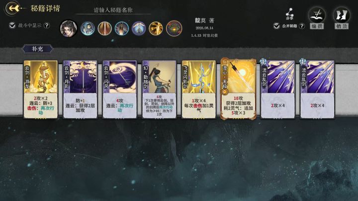 #弈仙牌陆剑心 给大家一个陆剑心玩盾的思路,新赛季思考了这么久感觉除了符咒之外牢陆还能玩灵气乌鸦盾,和大师兄的差不多,但是陆的多依赖灵气。在上个赛季是稳固剑锋玩命理或者灵植雪莲,但是感觉不强势,变数太多太多,这个赛季每个新牌一直试,最后还是感觉乌鸦能玩,而且看到明天乌鸦加强了,能上两个开局加灵气或者两个厄劫,感觉一点点好起来,主要是还是符咒师前期太弱了,后期太依赖神行符了,容错率不够。这一套
