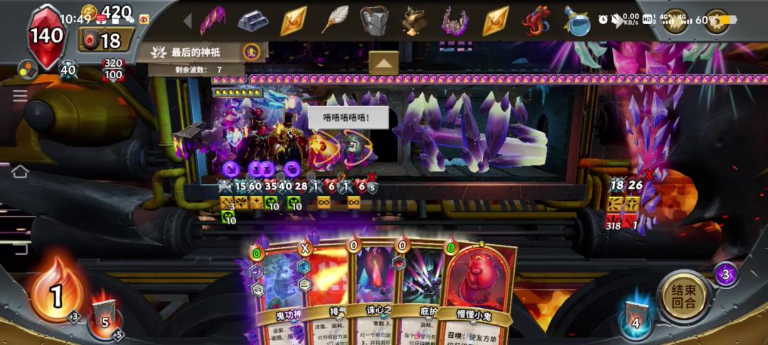 太追求极致数值了忘记第二层了还有一只大虫子[表情_豹哭] 五万晶爆没能实际性打出来 说下怎么打出来的吧,首先要有一个神器锯齿上颚,然后要有一个复活石小鬼学者,法术一张鬼功神力和一张还魂。 先把本来是不会消耗的鬼功神力用了进弃牌堆,还魂把它捞出来注能和消耗,对着小鬼学者使用,小鬼学者能捞出消耗堆里的鬼功神力,鬼功神力能把小鬼学者放回手牌,完美闭环了。 #怪物火车 #萌新攻略 #弑神 #25全亮计划