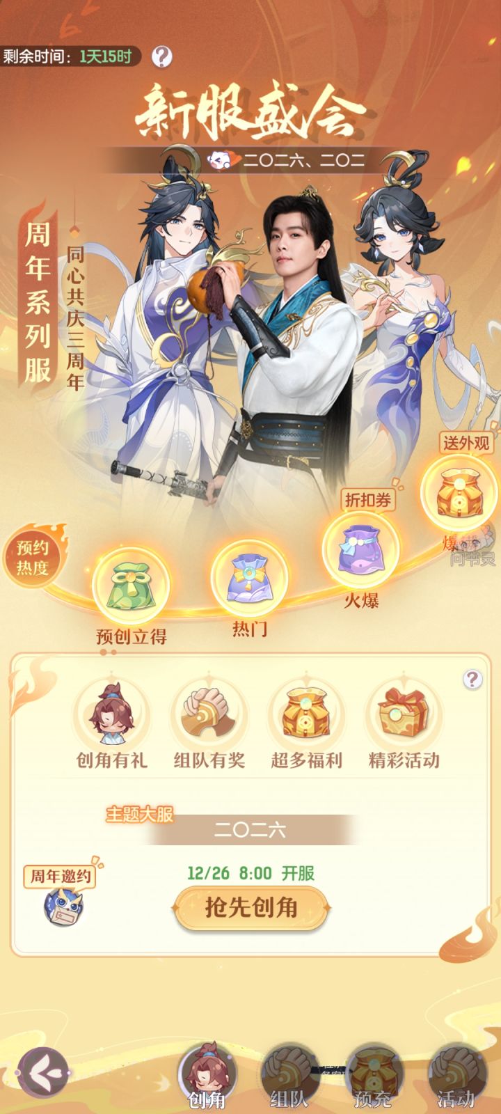 12月26日,长安幻想三周年庆典火爆来袭!携手长安幻想文化大使张若昀,带你共赴梦中长安。 十万人齐聚「二O二六」周年专服,首个兼备法术输出和冰冻封印的法系门派「广寒」上线,方寸之间,执掌战局!更有十八重福利等你收入囊中! 明日10点,一起解锁《长安幻想》手游三周年品牌宣传片“梦中长安”! #长安幻想 #长安幻想三周年 #张若昀代言长安幻想