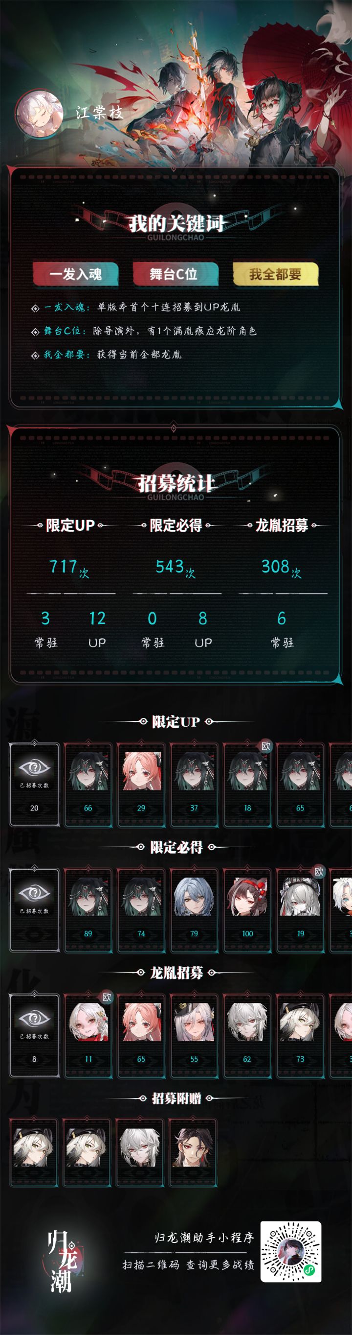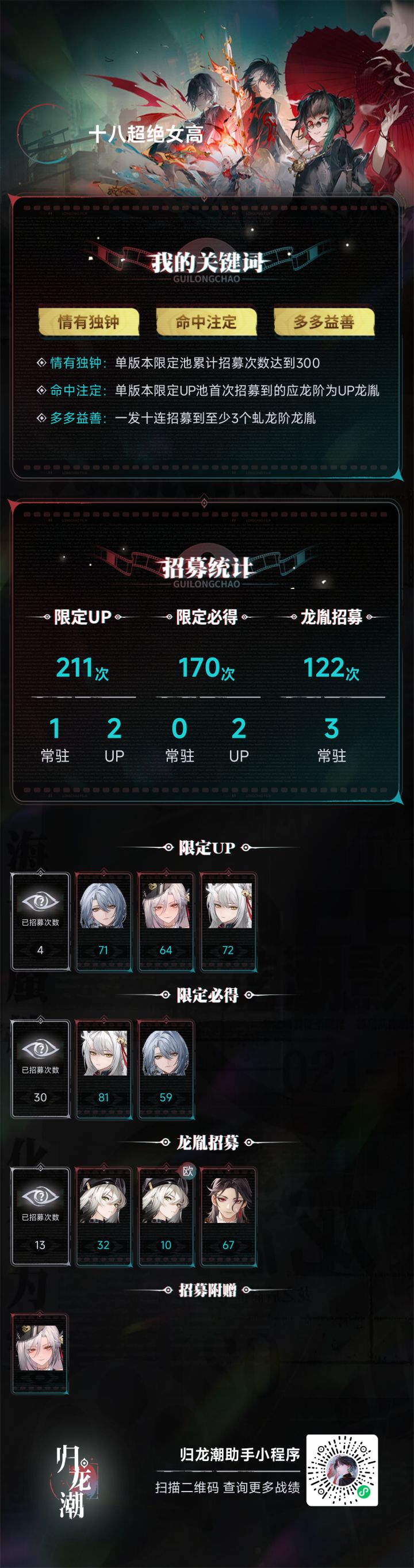 前一张图是限定池抽出来的,后一张图是常驻池抽出来的,#烛 #尘嚣 #欧皇附体 #归龙潮抽卡 #归龙潮