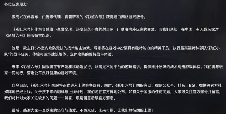 彩虹六号国服最新消息,2月23日晚国际服抢先下载