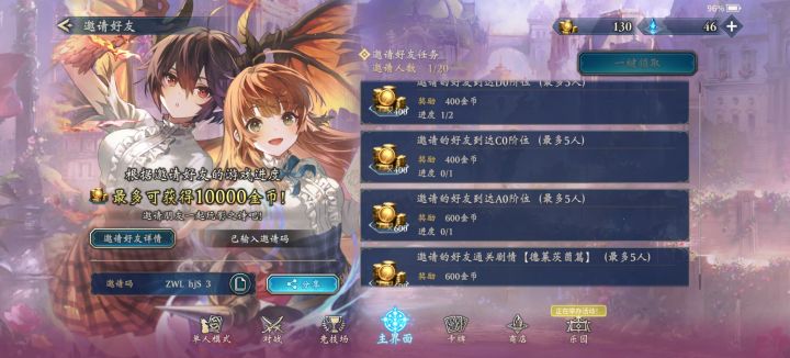 影之诗邀请码,互填领金币,已过剧情已到A0
