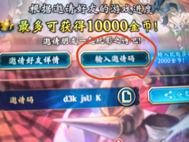 主界面左下角点击 "邀请好友" ,输入兑换码国服zNQQz2s(国际服3wG2V9c),即可领取2000金币奖励,童叟不欺,先到先得祝大家都出尸块#影之诗worlds #影之诗 #影之诗超凡 #影之诗国服欢迎新 #影之诗world #影之诗邀请码