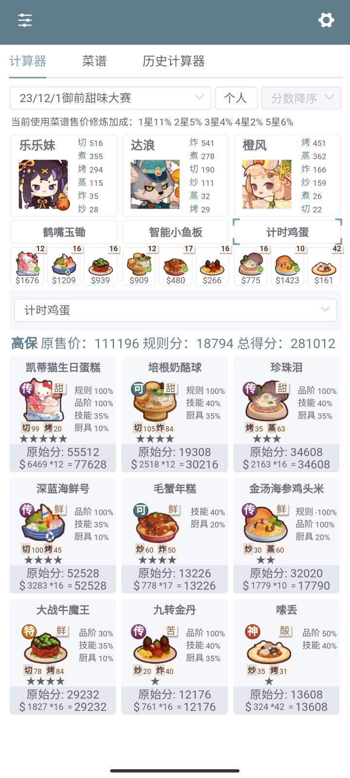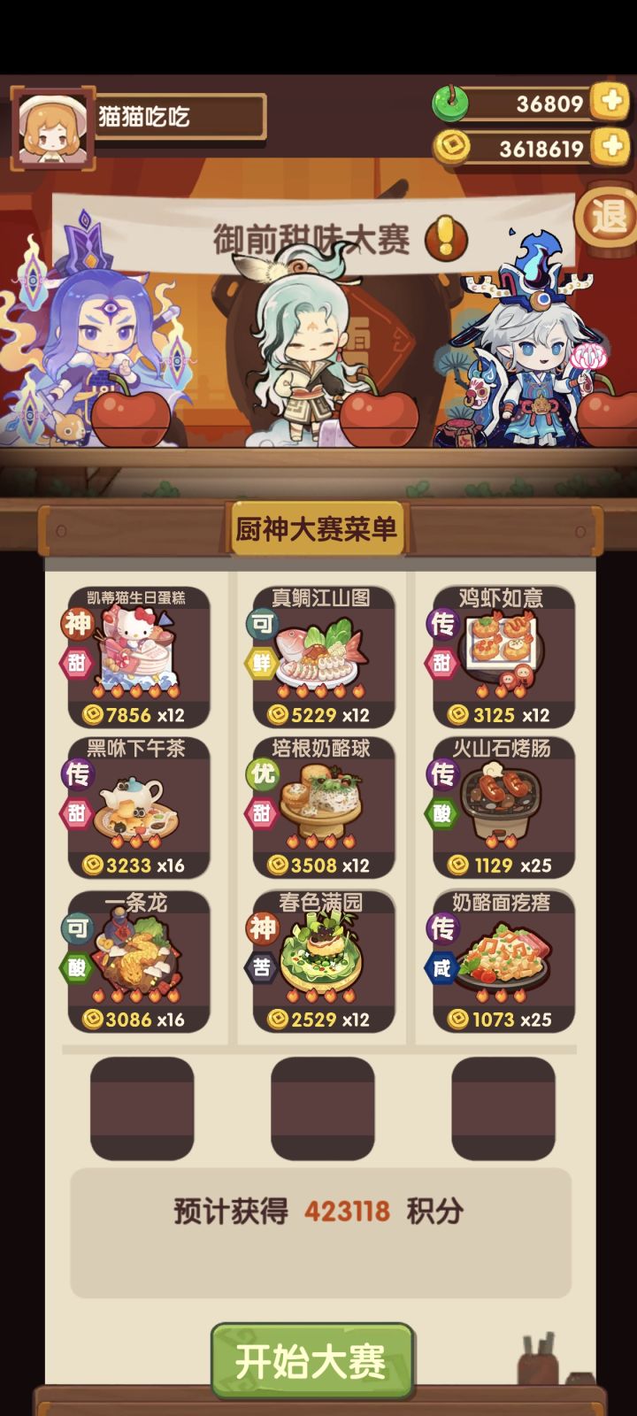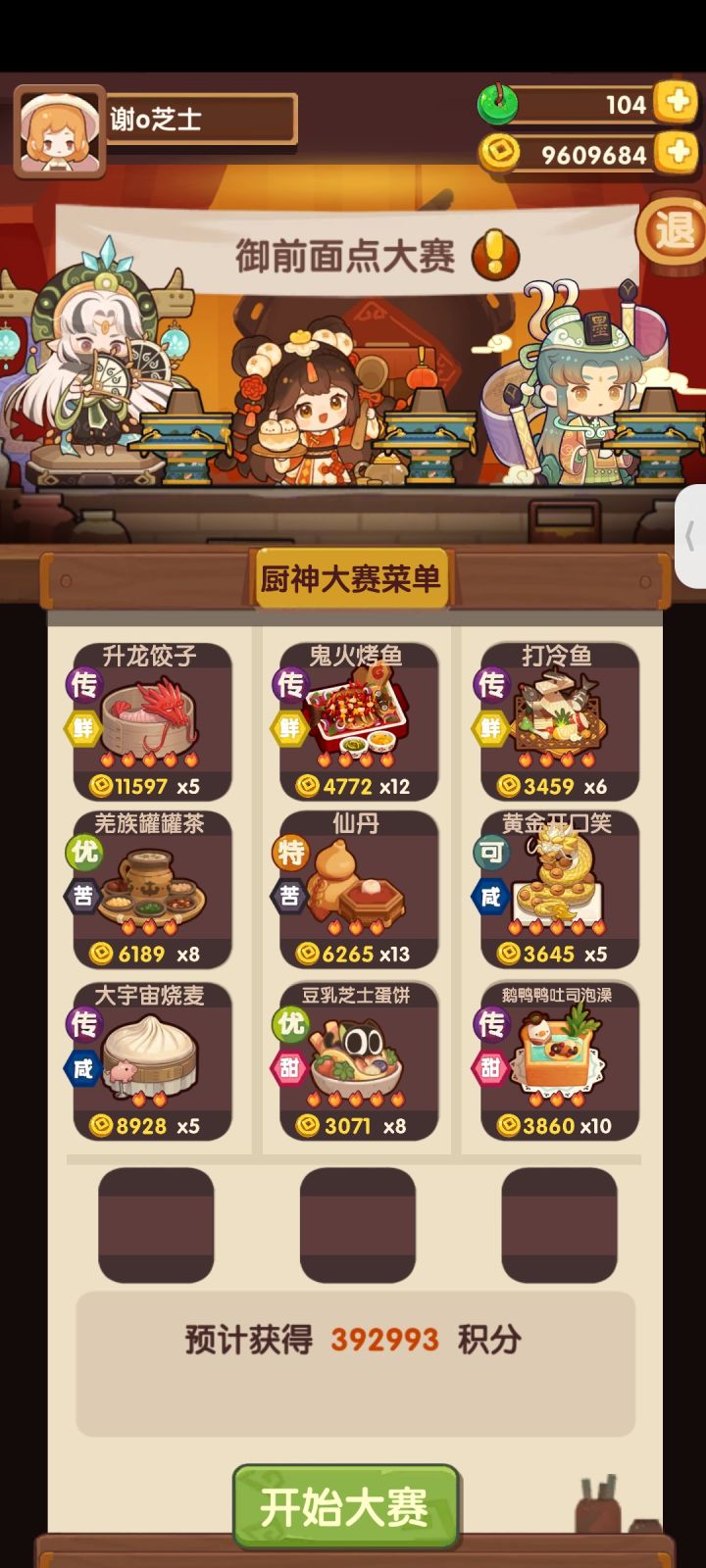 五周年入坑,没有荔枝虾球,除了达浪是绑定的三火厨具,其他两个都是2火的#御前厨神大赛