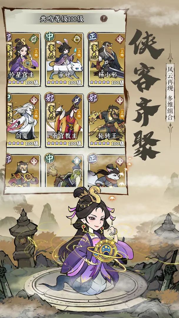 #御剑江湖 #发现好游戏 采用了传统的水墨画风格,背景和角色设计都充满了东方韵味。整体色调较为柔和,搭配中国传统色彩,给人一种宁静又不失激情的感觉。这样的色彩搭配容易让人产生视觉上的舒适感,图中人物设计精致且个性鲜明,尤其是画面下方的女性角色,其服饰和表情设计都很有特色。最后是流畅的战斗体验和随时可以停止的便捷性,这对碎片化时间较多的玩家群体具有很强的吸引力。总体来说很不错的游戏