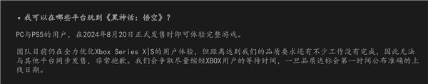 《黑神话:悟空》已经在Steam、Epic、腾讯WeGame等平台开启预售,游戏将于8月20日正式上线。但是细心的玩家发现没有微软的Xbox Series X|S版。 虽然游戏科学当时表示,因为优化尚未达标,所以将会延期发售。但是有传闻称是游戏科学与PlayStation达成了某种形式的独占协议,因此未能第一时间上线。那有让我们斗战胜佛低声下气的理由,这一次我们站起来了 但是今日
