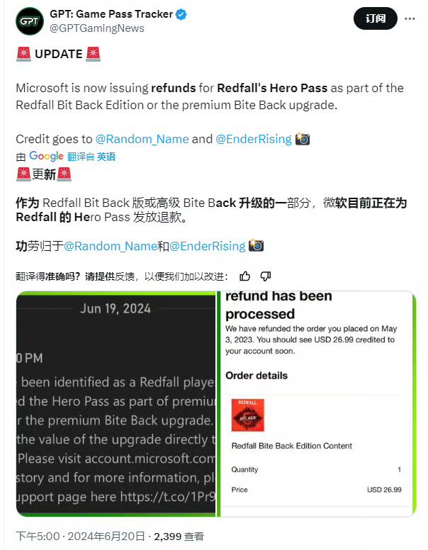 微软为Xbox端《红霞岛》玩家退款❗❗❗