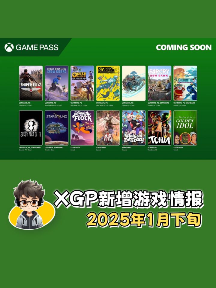 Xbox官方近日公布了2025年1月下旬的Xbox Game Pass(XGP)新增游戏名单。其中包括多款首日游戏,为玩家们带来了丰富的游戏选项。🎮✨1月22日新增游戏•《Flock》(主机)•《巨兽战争:狂暴版》(云、主机、PC)•《祇:女神之路》(主机)•《魔法餐作室》(主机)•《Tchia》(Xbox Series X|S)•《金偶像谜案》(主机)•《星界边境》(云、主机)1