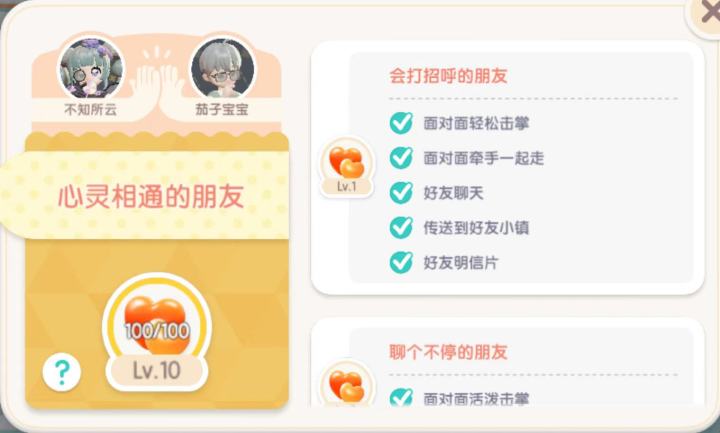 从1级好友到当时的满级,8级,需要多少天?不间断的情况下,需要整整一百个日夜的坚持! 每一次互动,拍手或拥抱,都承载着笑声和陪伴。然而,命运开了一个小玩笑,你离开了小镇,那个熟悉的ID背后,不再是你百多天的陪伴,瞬间泄了气,但故事还没结束!🫤🫤 新号主保留了“陌生的老熟人”,前天更新,好友等级上限提升到了10级。就在今天,仅仅和新号主进行了三天内的第三次互动,金光闪闪的“10级好友”就毫无预兆又