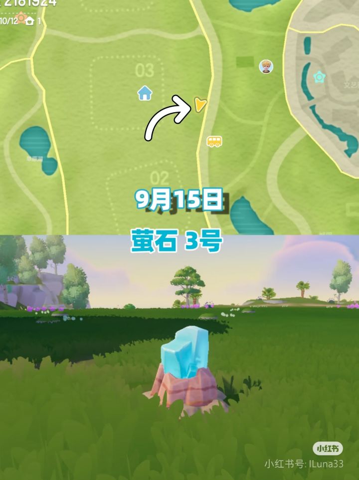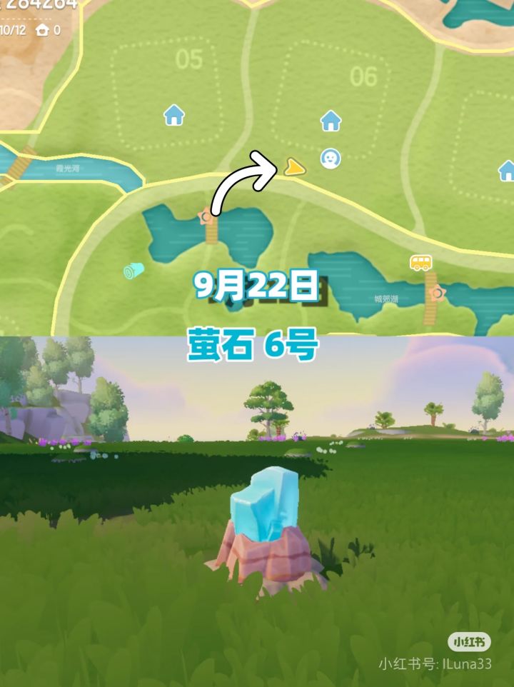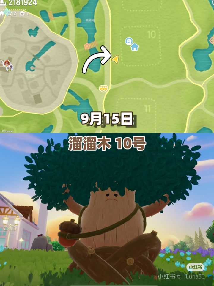 9.15日的兔子家具获得地,位于渔村东栈,黄色箭头是准确位置,获得家具是明月灯串#心动小镇 #心动小镇中秋家具