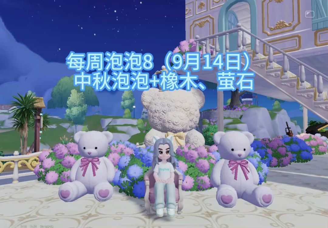 心动小镇,9月14日每周泡泡一共15个,中秋泡泡在森林岛的帐篷上,橡木在9号房前,萤石在5号房前 #心动小镇 #心动小镇无瑕萤石 #心动小镇溜溜橡木 #心动小镇中秋家具 #心动小镇家具泡泡
