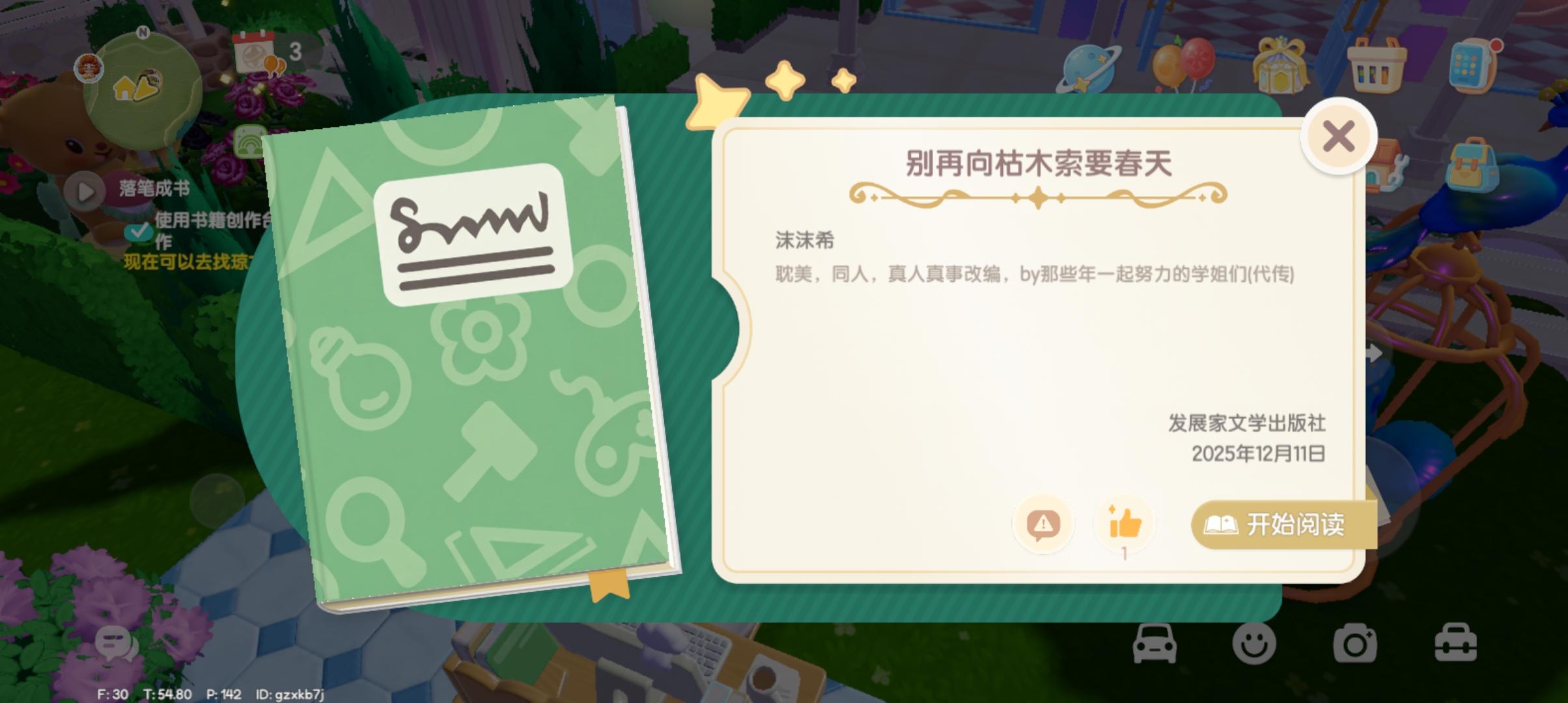 本来想说敢出就敢写,刚要夸,结果系统送的出版的我自己的那本看不了,买的也看不了,什么意思?一打开就卡死卡退。。。。我好友也看了就卡死只能卡退。。。。#心动小镇 #心动小镇日常 #心动小镇创作计划 #心动小镇创作家激励计划 #心动小镇书店