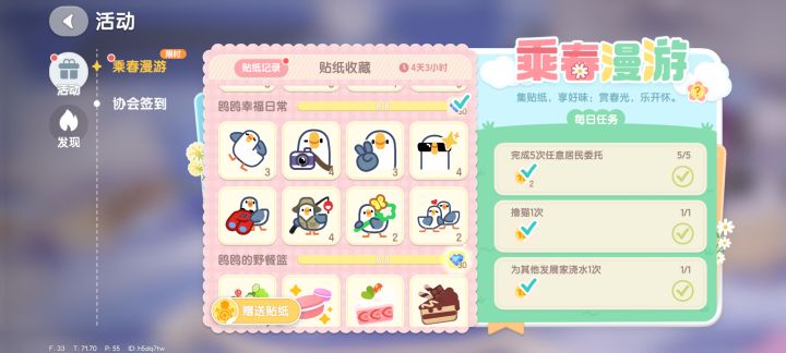 【贴纸交换集合贴】心动小镇乘春漫游贴纸交换,在评论区留下交换信息吧! 心动小镇春天即将到来,整个小镇都变得春光焕发的,大家可以在游戏中收集和交换贴纸,为小镇的春天增添一丝春光气氛! 集贴纸,享好味;赏春光,乐开怀。 在评论区留下你【需要交换的贴纸】,和【游戏id】,去和小镇的新朋友面对面交换贴纸吧! #心动小镇 #心动小镇创作计划 #心动小镇小蓝和他的朋友 #心动小镇成就 #心动小镇隐藏成