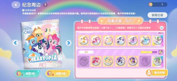 就剩两个没有集齐一直抽到重复款有没有小伙伴们可以互换的 也可以共鸣,或是代买,帮浇花一类的#心动小镇 #心动小镇小马宝莉徽章互换 #心动小镇互助
