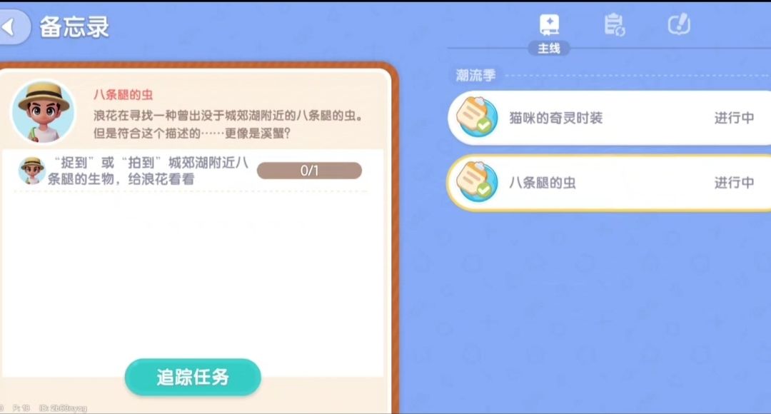 大家拍到了溪蟹照片或者钓到了溪蟹,记得再去找一趟浪花给他交差哦!任务进度条并不会自动从0/1变成1/1的#心动小镇 #心动小镇创作计划 #小镇奇灵夜季 #心动小镇任务 #心动小镇八条腿的虫
