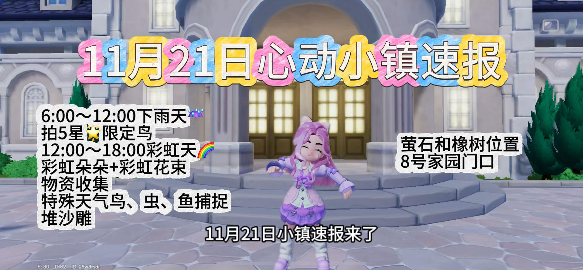 天气 6:00~12点雨天☔️ 适合拍五星鸟 12:00~18:00彩虹天🌈 找朵朵+彩虹花束 特殊天气资源收集 萤石和橡树都在8号家园门口 #心动小镇甄嬛传联动 #心动小镇创作家激励计划 #游戏日常 #心动小镇攻略 #心动小镇