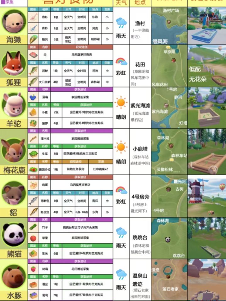 #心动小镇攻略 #动物新邻季攻略征集 #心动小镇动物新邻季 #心动小镇动物登岛 #心动小镇动物食槽图 #动物新邻季攻略征集 7.9更新说明:增加了每个动物食槽实景图,方便找不到食槽的宝宝参考 ---------------------------- 心动小镇动物照顾玩法上线啦!8种动物分别是熊猫、水豚、兔子、狐狸、海獭、貂、梅花鹿、羊驼。 动物食槽的大小和动物们的体型是等比例的,大型动物