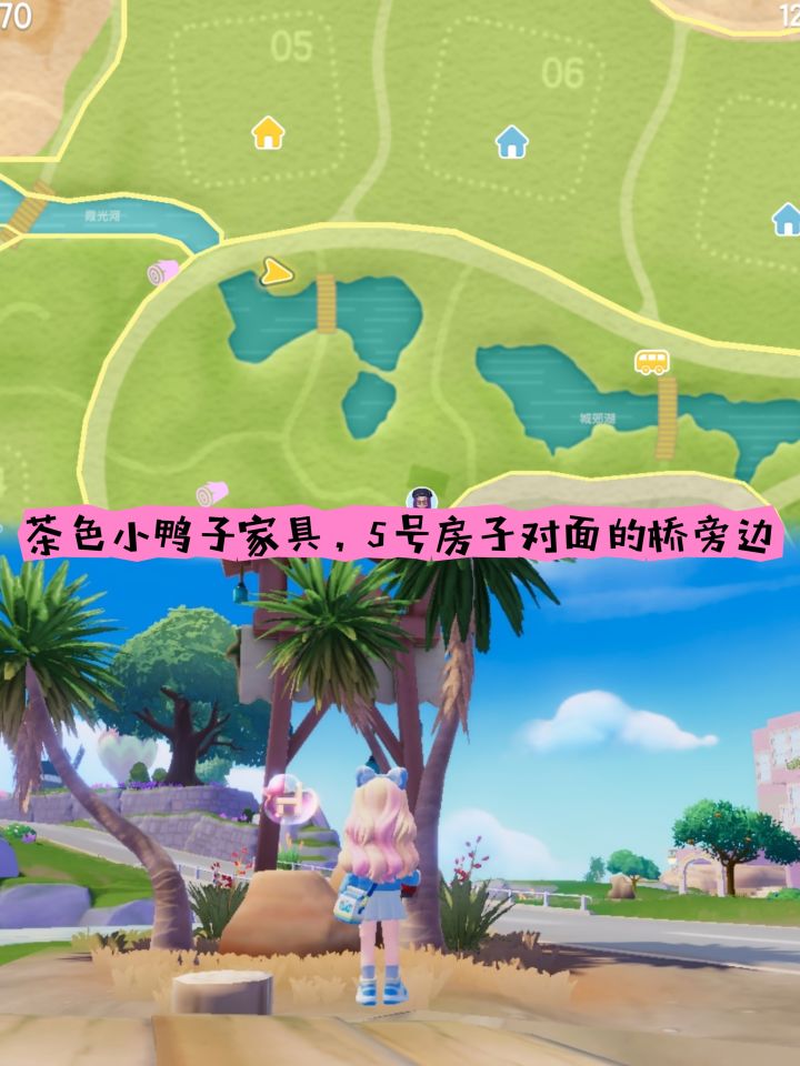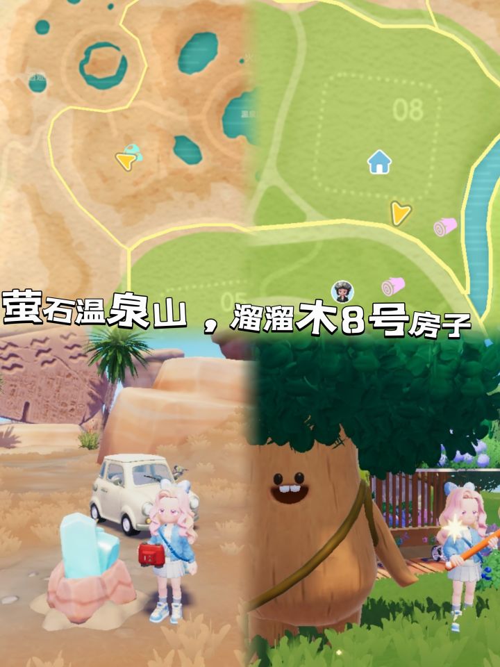 橡木:5号房前萤石: 1号房前粉绿鸭子拍摄地:彩旗线上果绿鸭子泡泡:如图,悬崖下的树旁边#心动小镇 #心动小镇家具泡泡 #心动小镇小鸭子位置 #心动小镇无瑕萤石 #心动小镇溜溜橡木