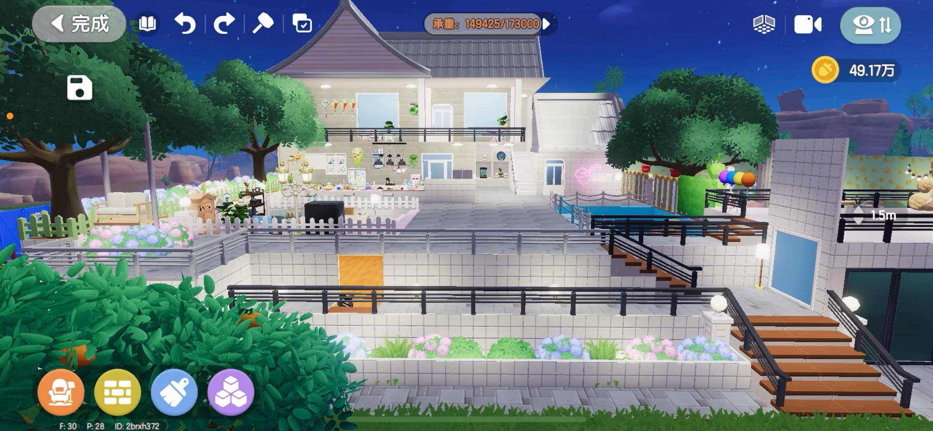 记录小镇里盖的一个房子和思路~ 建材家具主要是动物新邻季、水之誓约、引星河、虹光部分混搭。400多动物爪爪材料包。0卡尝试建筑美观度。 颜色:白+豆青绿+浅粉。觉得这个配色很好看~日光白明净,月光更清冷调。 风格:白色的环屿茅草屋顶和淡彩的浅境流纹圆窗搭配,做成有些园林印象的洞门亭子。再围着大水池组合成高低错落的院落。挂上水幕,有动感和自然意境,仙仙的,单层会清透一些。楼梯摆成螺旋或对称样式。几乎