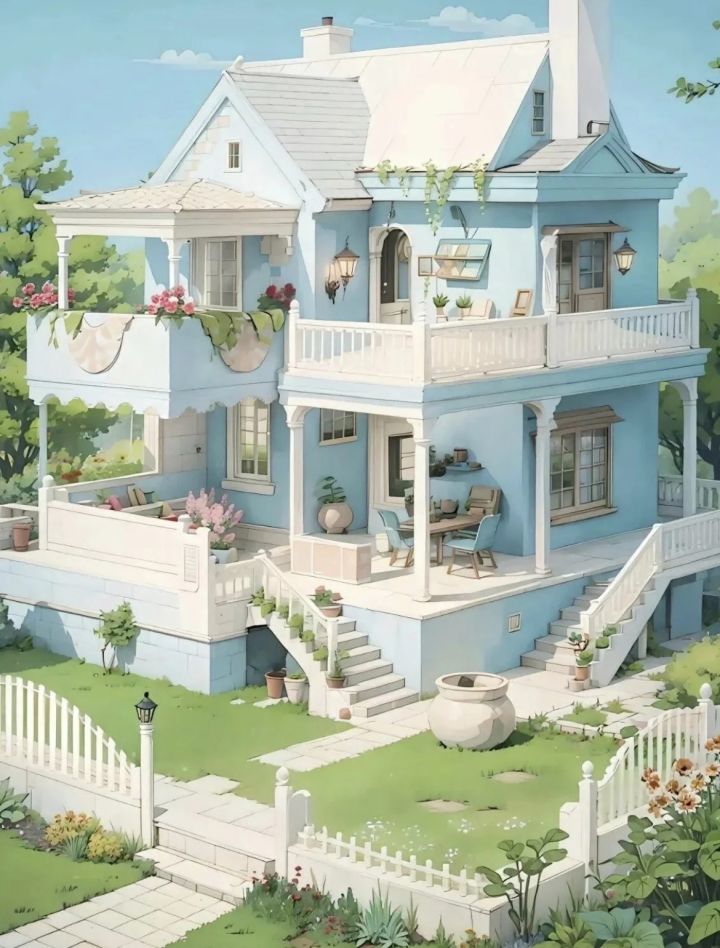 蓝白调的房子太好看了吧