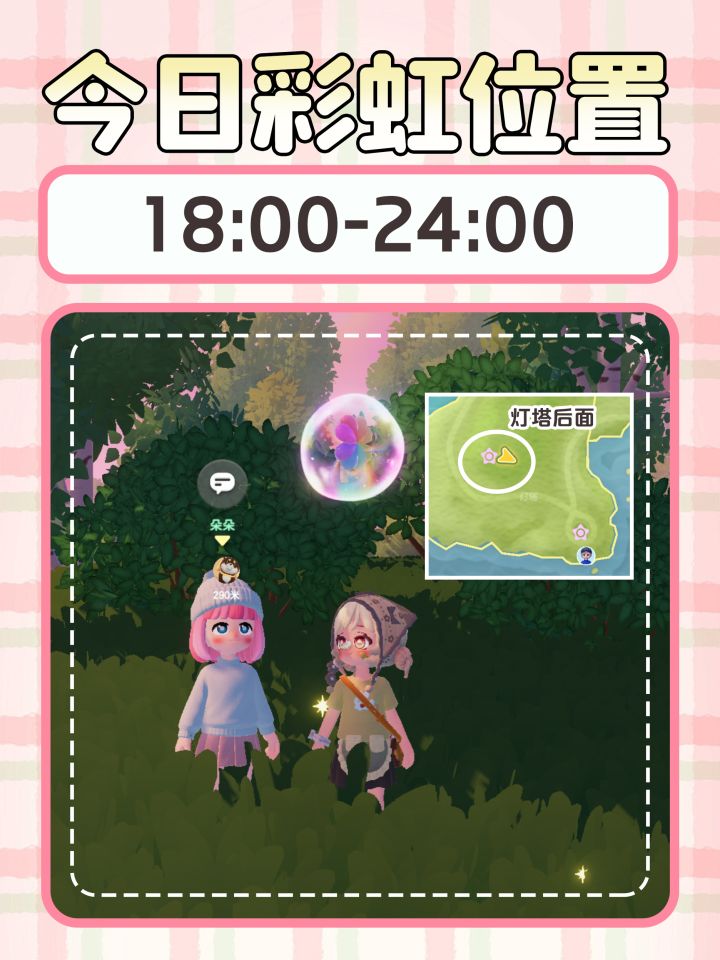 时间:18:00-24:00朵朵:渔村灯塔后面山上花束:1️⃣朵朵身边一个2️⃣灯塔绕着转圈圈一个3️⃣家园门口#心动小镇 #小镇庆典春野令 #心动小镇创作计划 #心动小镇创想团 #今天游戏圈发生了啥 #心动小镇彩虹 #心动小镇雨天和彩虹日