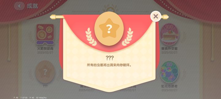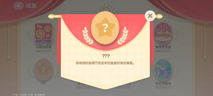 心动小镇新隐藏成就的最新消息来了,从早上不到7:00进入到游戏并开始自建小镇邀请活跃肝帝大佬们一起测试新成就任务。到现在21:00左右经历一天的反复测试,通过群成员的猜想,推测,到正在新的隐藏成就无果!主要通过引虫出洞事件和海钓事件在满人的情况用各种方式方法测试,花费金币若干,花费蓝钻心钻,花费满愿星几百,还是无果!其次通过全小镇的虫虫抓捕,钓鱼,鱼尾,诱捕器等等巧具花费若干,也是无果!现