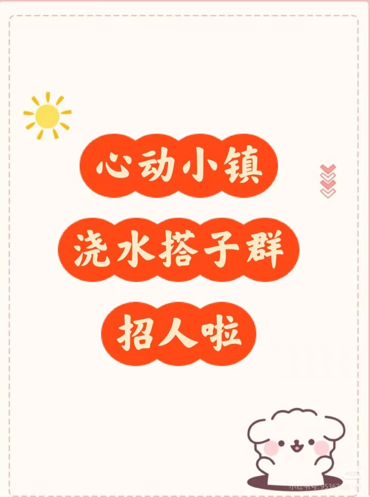 心动小镇浇水搭子群招人啦心动小镇浇水搭子群招人啦,卡园艺9级~由于目前已满200人,无法通过二维码直接拉入,现建立中转群,进群后加群主或管理v拉入大群,欢迎各位宝宝的加入。。。。 欢迎玩心动小镇的宝宝加入,群内宝宝活跃友好,互帮互助1、群内可找小镇搭子,长时间活跃在线,也可以聊天,分享建房教程,采集果子等。2、群内组织或自行发起撒花浇水、点赞、翻锅、抓虫、钓鱼、观鸟、开图鉴、刷精通等。